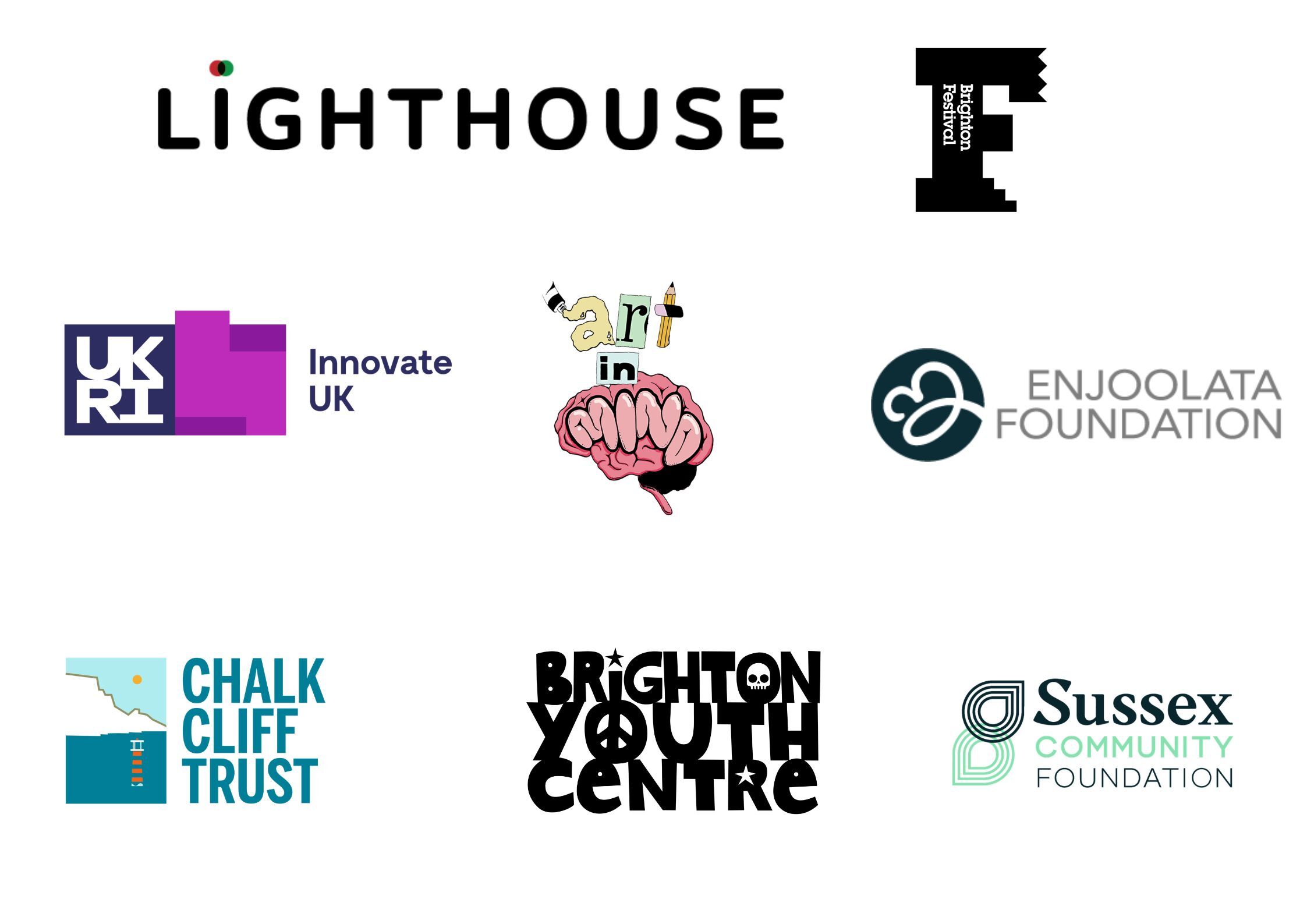 We're grateful to: Innovate UK, Chalk Cliff Trust, Sussex Community Foundation, Enjoolata Foundation, Brighton Festival, Brighton Youth Centre and Art in Mind.