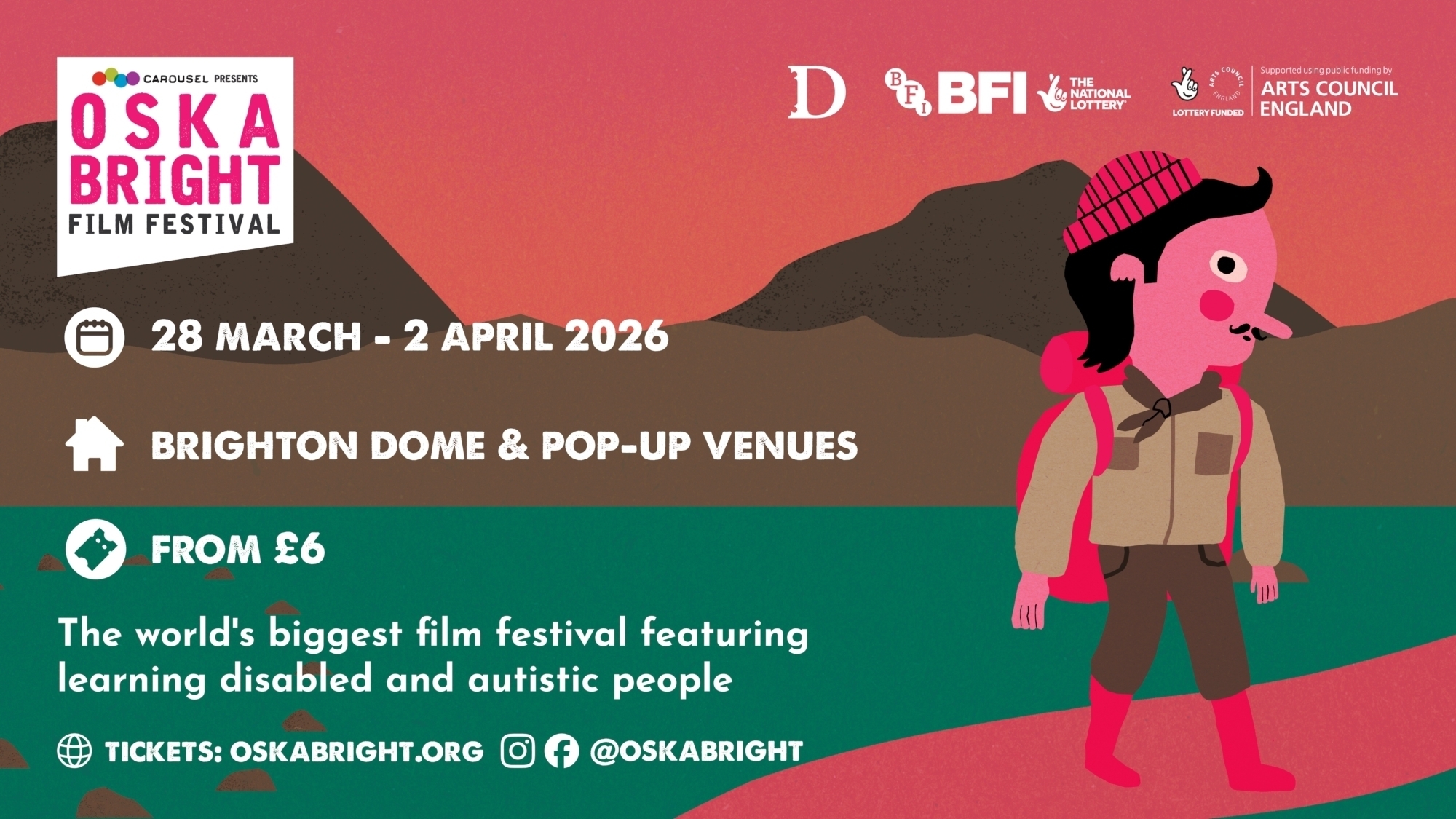 Oska Bright Film Festival is the world’s leading festival celebrating films made by or featuring people with learning disabilities or autism, championing greater inclusion across the film industry. Funded by the BFI and supported by industry partners, Oska Bright delivers a BAFTA-qualifying festival alongside year-round training, mentoring and skills development.