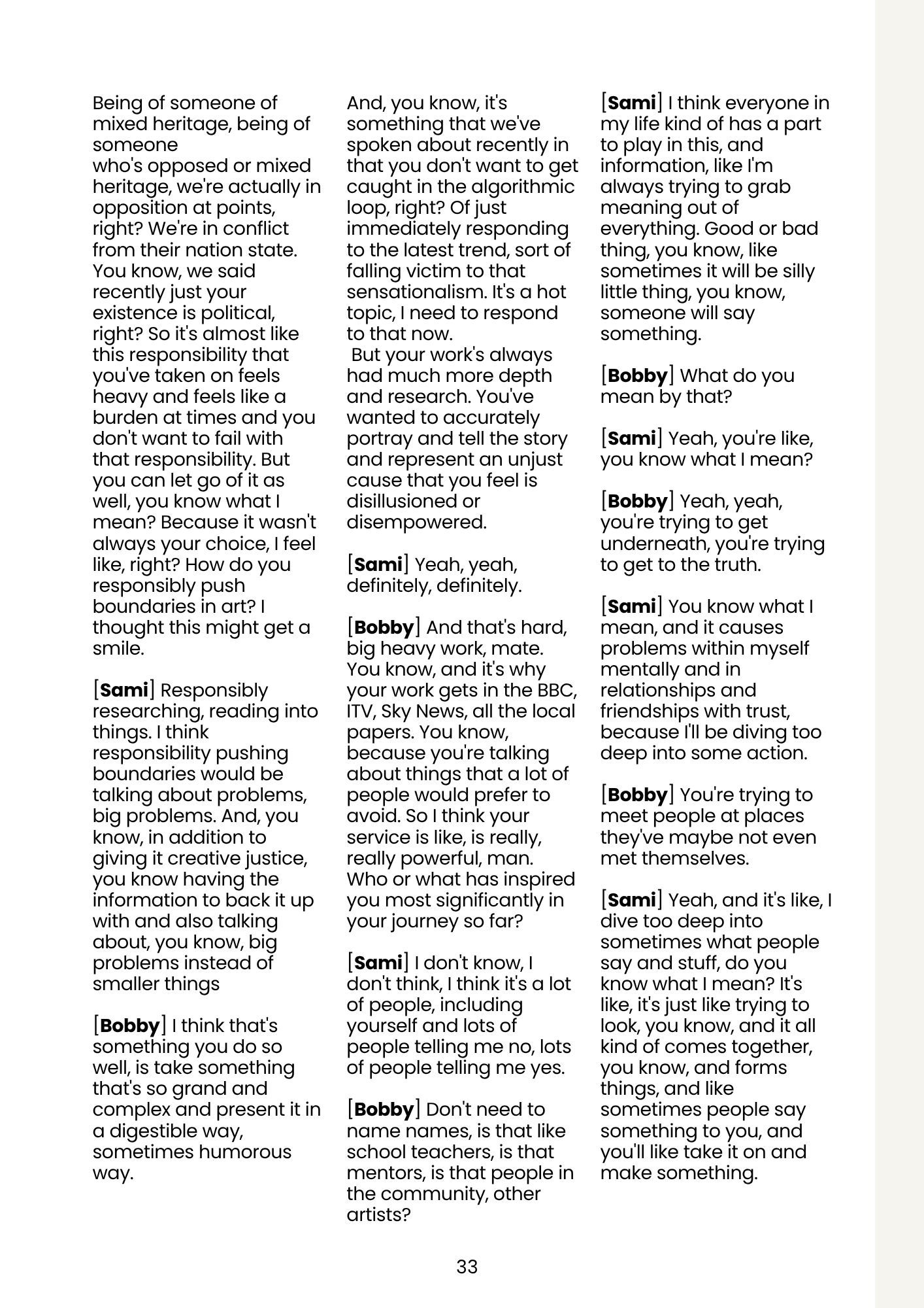 Sami and Bobby’s conversation explores the intersection of art, activism, and lived experience. Listen along to the interview below.